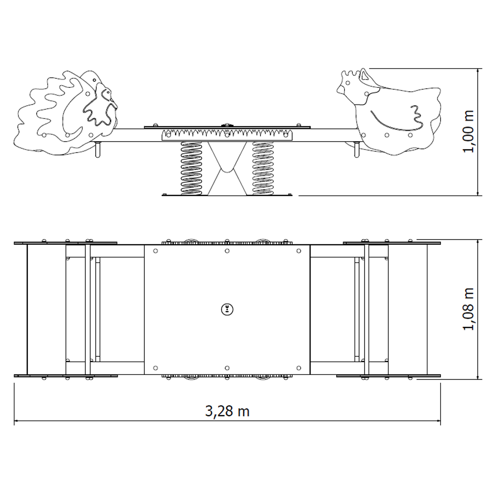 El balancín Cuento de Hadas que se presenta es un equipo de juegos infantiles, diseñado para niños que posean de 3 años en adelante, en el que se desarrollan las habilidades tanto motoras como sociales, estimulando el desarrollo de fuerza y coordinación mientras los niños se divierten.