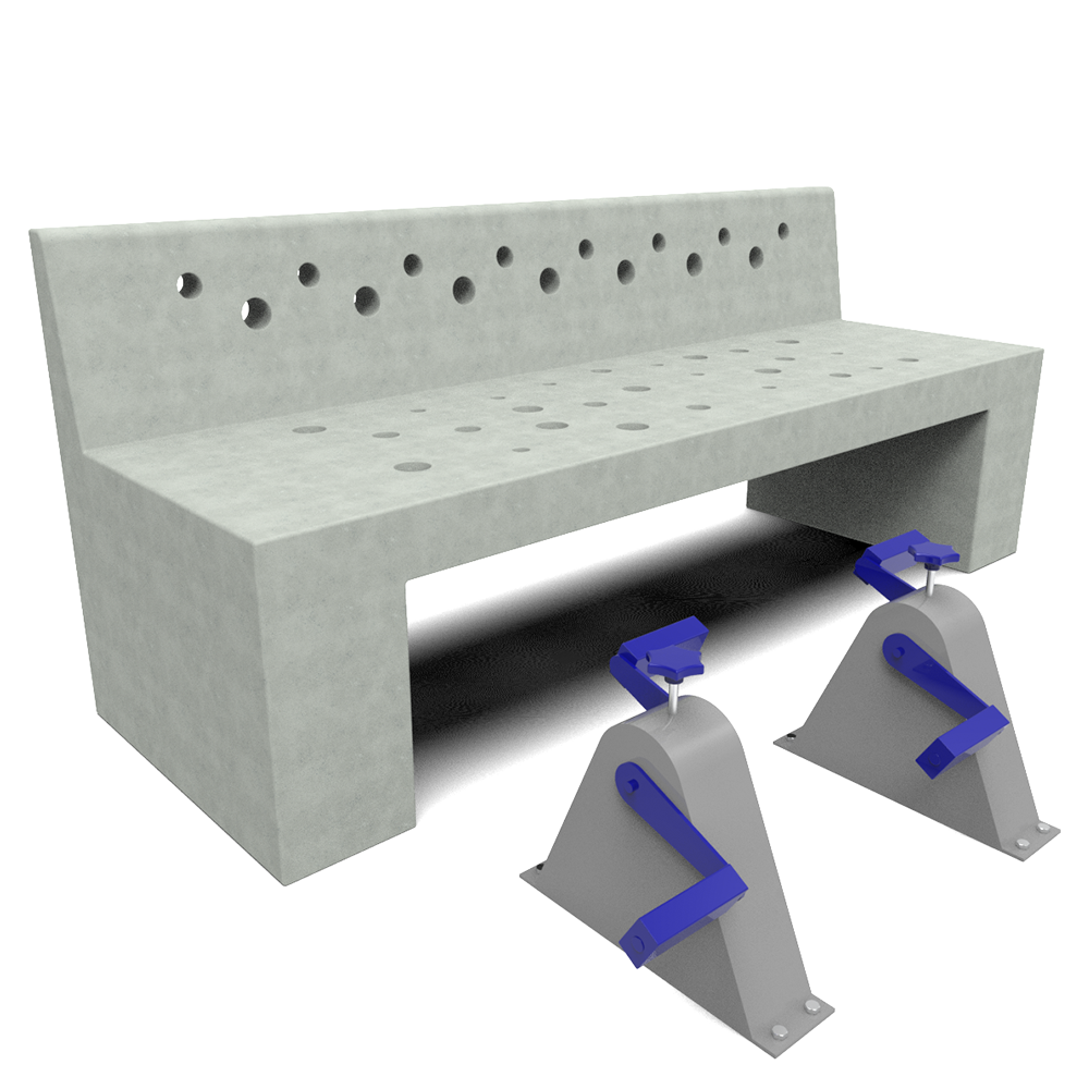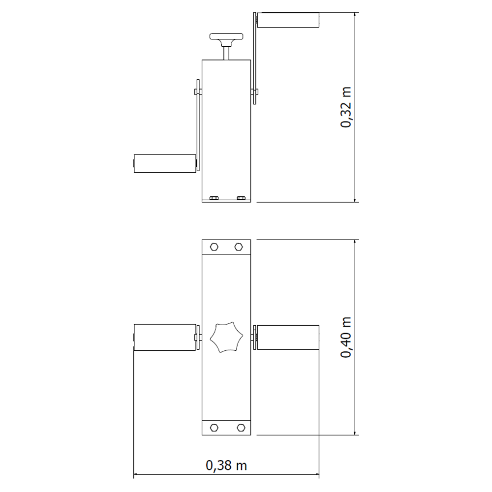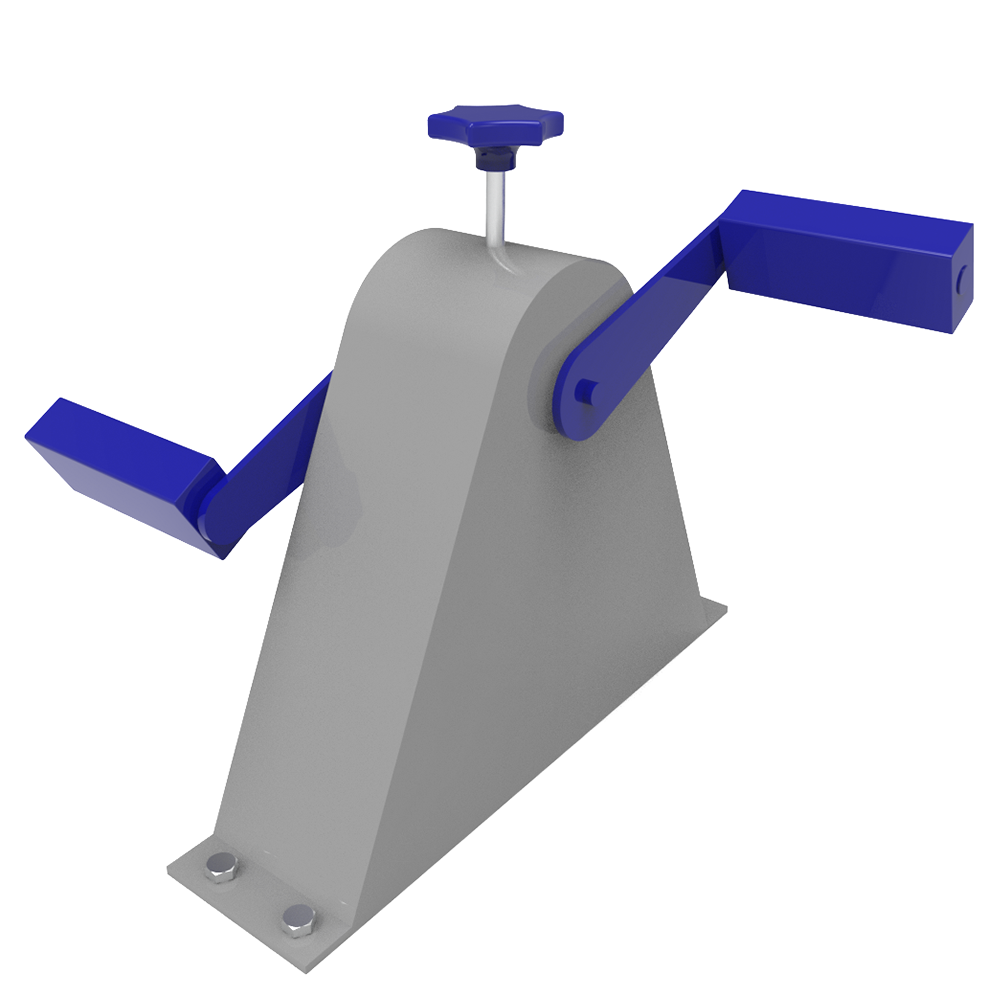 Conformada por una estructura de planchas de acero galvanizadas brindando resistencia y durabilidad a lo largo de su vida útil. A demás, de ejes, rodamientos y freno de acero (siendo los dos primeros elementos mencionados auto lubricados), proporcionando un movimiento suave y seguro durante su uso.