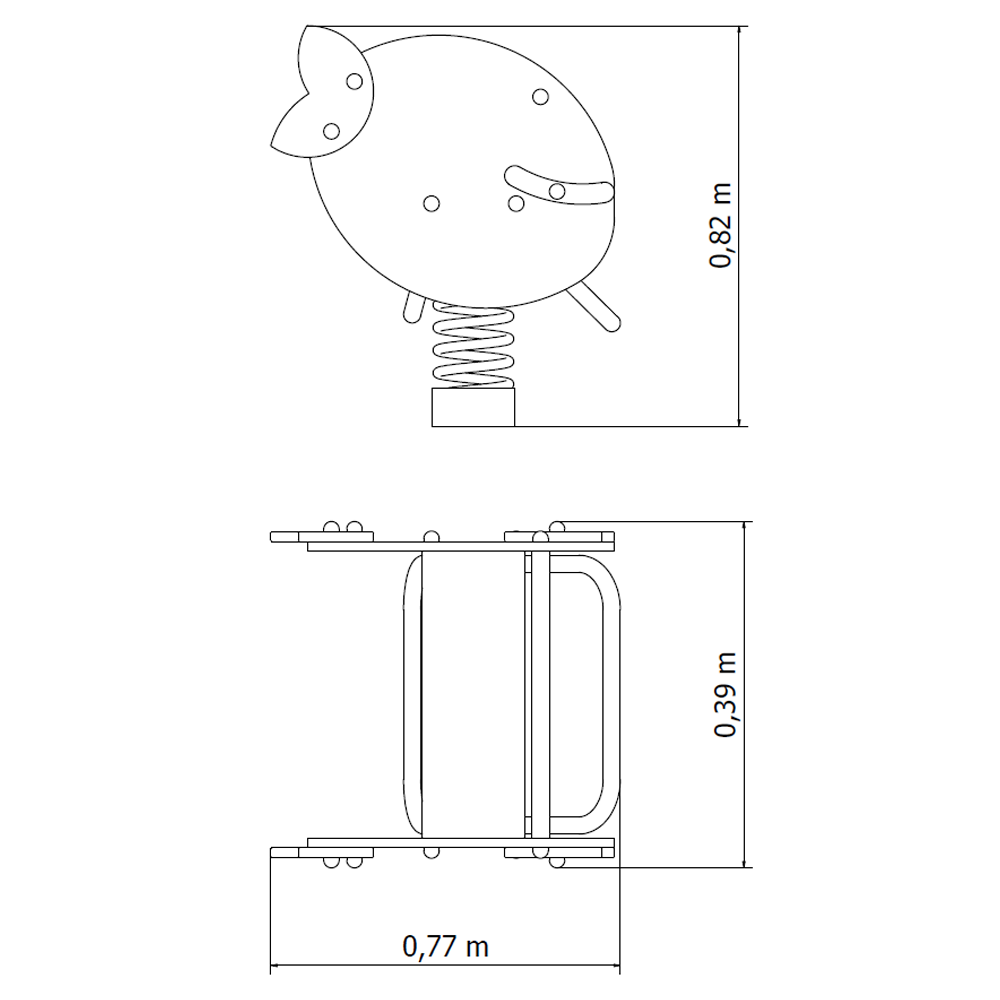 El pez resorte que se presenta es un equipo de juegos infantiles diseñado para niños de que posean entre 3 a 8 años, estimulando el desarrollo de fuerza y coordinación mientras los niños se divierten.
